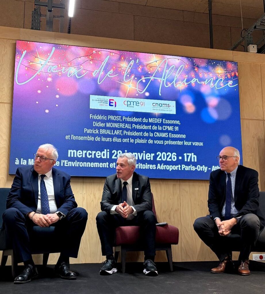 Mercredi 28 janvier 2026, la Maison de l’Environnement à Athis-Mons a accueilli les Vœux de l’Alliance 2026, un événement fédérateur organisé par la CPME 91, le MEDEF Essonne et la CNAMS IDF Essonne. Plus de 150 chefs d’entreprise, partenaires et acteurs économiques du territoire se sont réunis pour échanger et partager leur vision du développement de l’Essonne. Parmi les personnalités présentes, Patrick Briallart, Président de la CNAMS Île-de-France, a saisi l’occasion pour présenter le Livre Blanc de l’U2P, un outil clé pour les enjeux des élections municipales de 2026.
